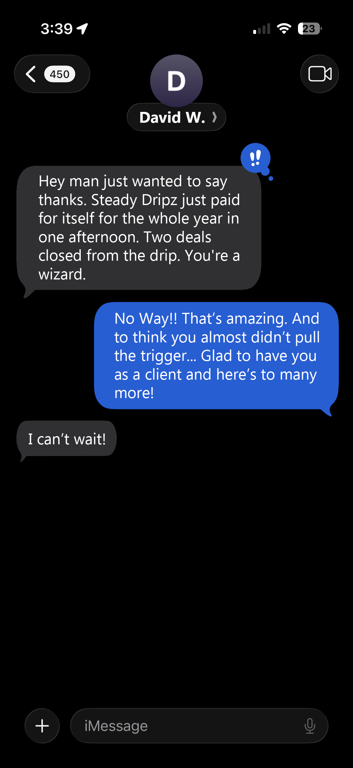 "Steady Dripz just paid for itself for the whole year in one afternoon"