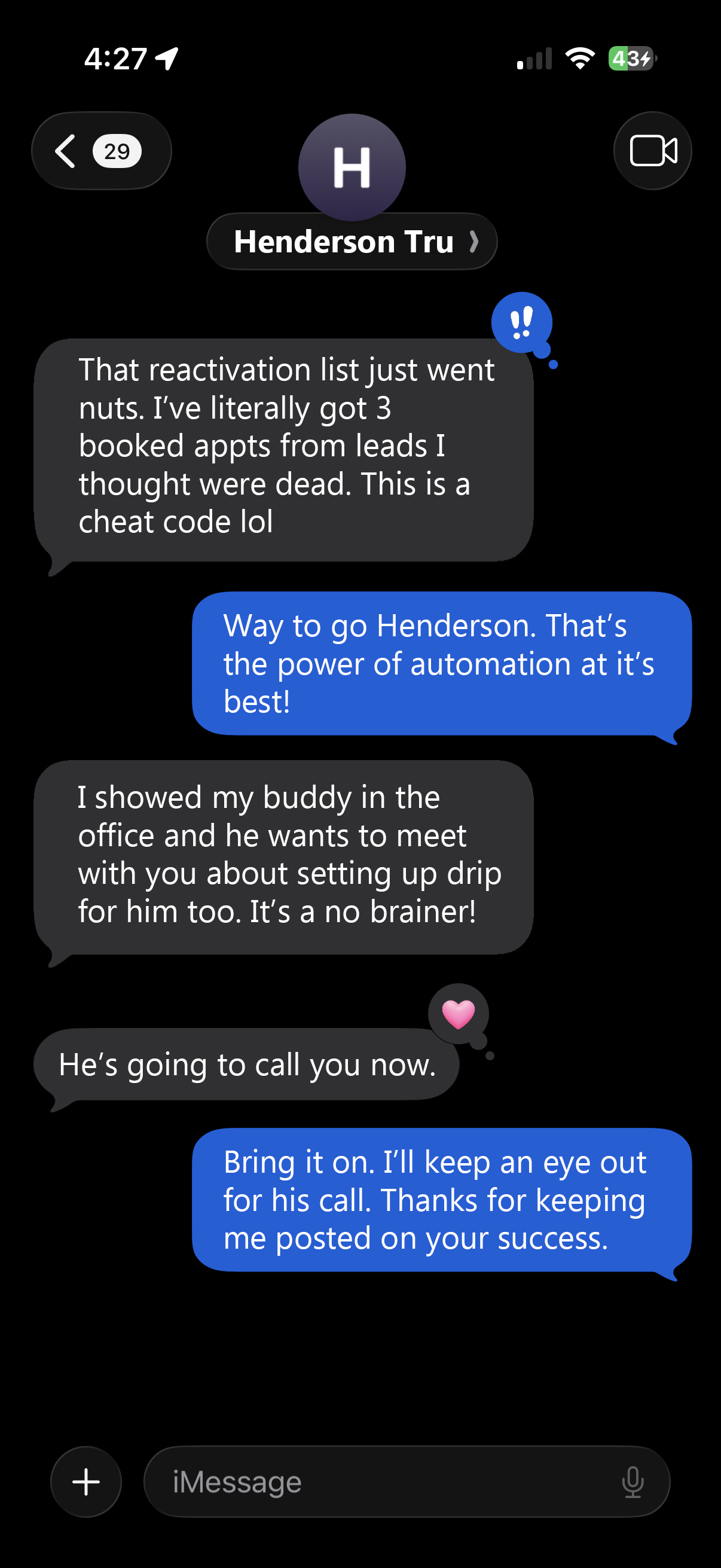 "That reactivation list just went nuts. I've literally got 3 booked appointments from leads I thought were dead"