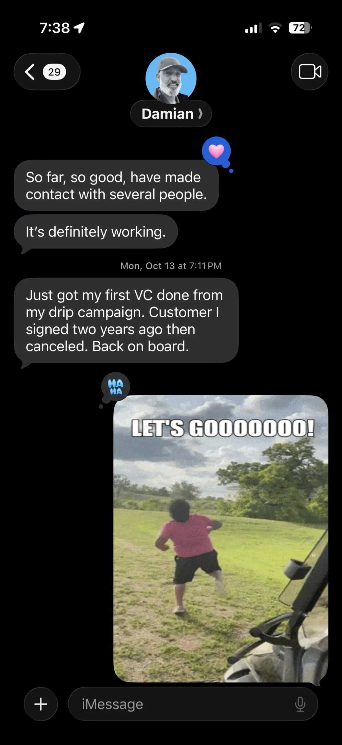 "Two deals closed from the drip"